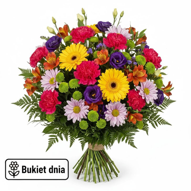 Bukiet Dnia powstaje z najświeższych kwiatów dostępnych danego dnia w kwiaciarni. Każda kompozycja tworzona jest z dbałością o harmonię i estetykę. W bukietach wykorzystywane są kwiaty sezonowe i całoroczne, co pozwala stworzyć spójną i świeżą aranżację. To idealny wybór na prezent. Zamów bukiet z dostawą na terenie Ełku i spraw miłą niespodziankę.