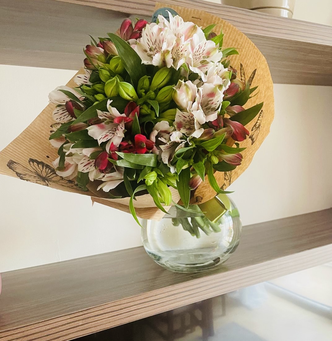 Bukiet ładny i świeży, ale nie aż tak duży jak na zdjęciu na stronie. Dostarczony na czas. Polecam.