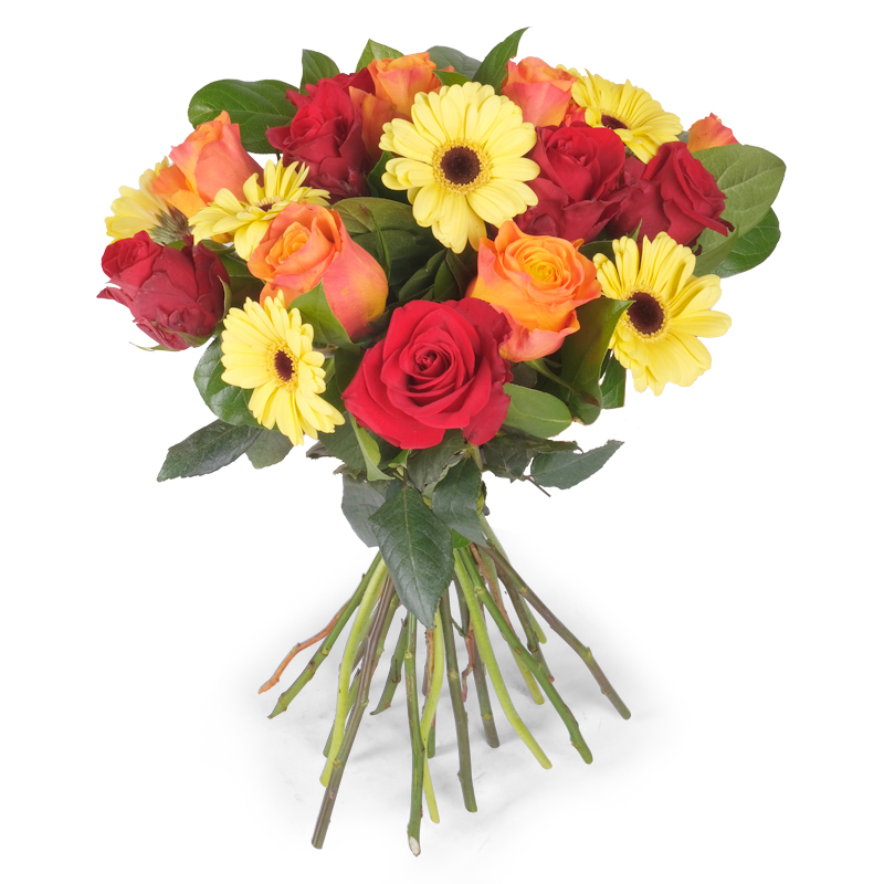 To bukiet pełen pozytywnej energii i blasku. Każdy kwiat w tej kompozycji jest jak promień słońca. Róże i gerbery tworzą harmonijny duet. To bukiet, który inspiruje i zachwyca. Idealny dla osób o pogodnym usposobieniu, które zasługują na nietuzinkowy podarunek!